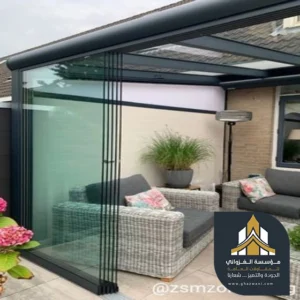 • الغرف الزجاجية المنزلقة: تتميز بسهولة فتحها وإغلاقها، وتوفر مساحة أكبر عند فتحها.