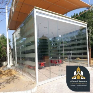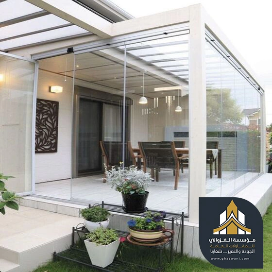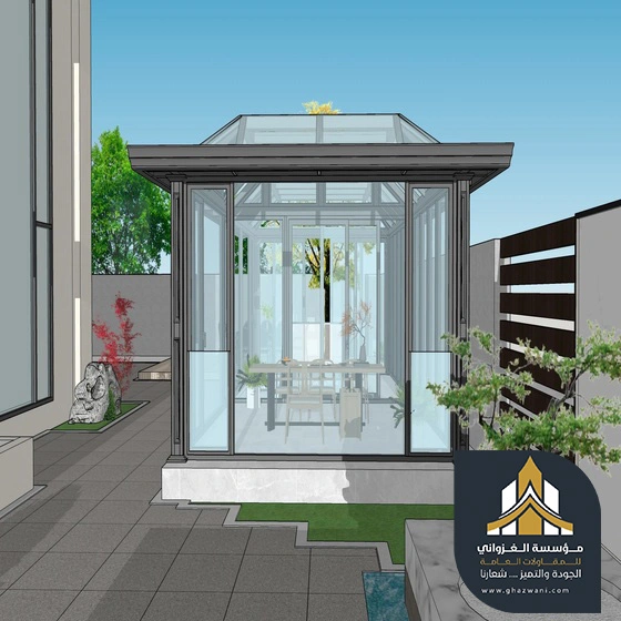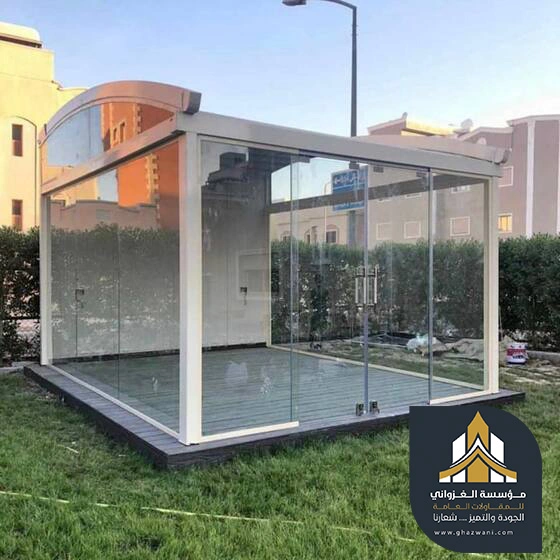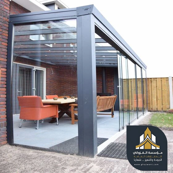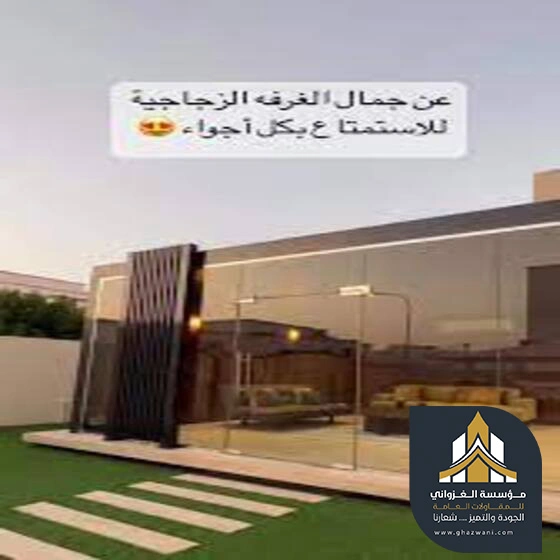 “نحن في مؤسسة الغزواني للمقاولات نقدم لك مجموعة متنوعة من الغرف الزجاجية لتناسب جميع احتياجاتك، بما في ذلك: