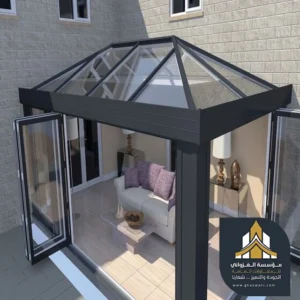 • الغرف الزجاجية القابلة للطي: تتميز بمرونتها وسهولة تركيبها، وهي مثالية للمساحات الصغيرة.